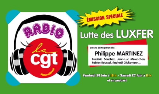 Retrouver la Radio Cgt le 26 juin à 18h et en réécoute à volonté, pour une émission spéciale lutte avec les Luxfer et des invités exceptionnels : Philippe Martinez, les salariés de GM&S sur leur projet de loi et leur combat, les syndicats CGT d’Air Liquide, Sabart, Aerotech et l’ensemble des syndicats du département du Puy de Dôme où des annonces de plans de licenciements se profilent (Michelin, Dietal, MSD, Aubert et Duval, HOP et bien d’autres…).
